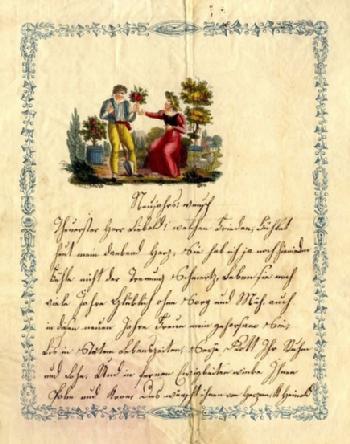 1800-30 Lettre de voeux allemande sur papier illustré