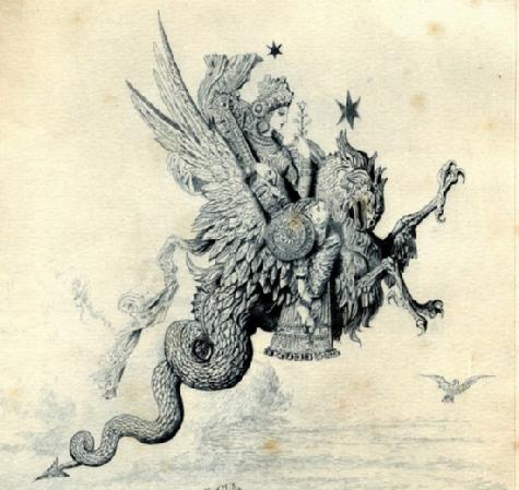 19ème siècle. Gravure : Jérusalem délivrée et dragon à deux têtes.